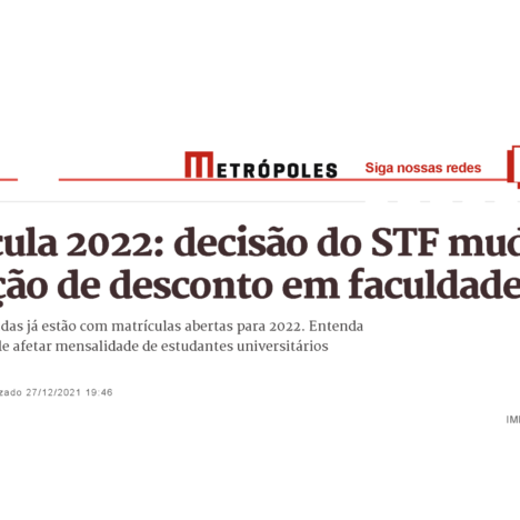 Na matéria publicada pela Metrópoles, reportagem de Ana Karolline Rodrigues, entenda como a decisão do Supremo Tribunal Federal, na ADPF 706, pode afetar as matrículas abertas para 2022, em Instituições…