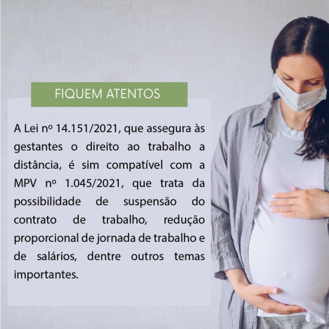Fiquem atentos! A Lei n° 14.151/2021, que garante regime de trabalho remoto às trabalhadoras gestantes durante a pandemia da Covid-19, tem compatibilidade com a MPV n° 1.045/2021. Se você se…